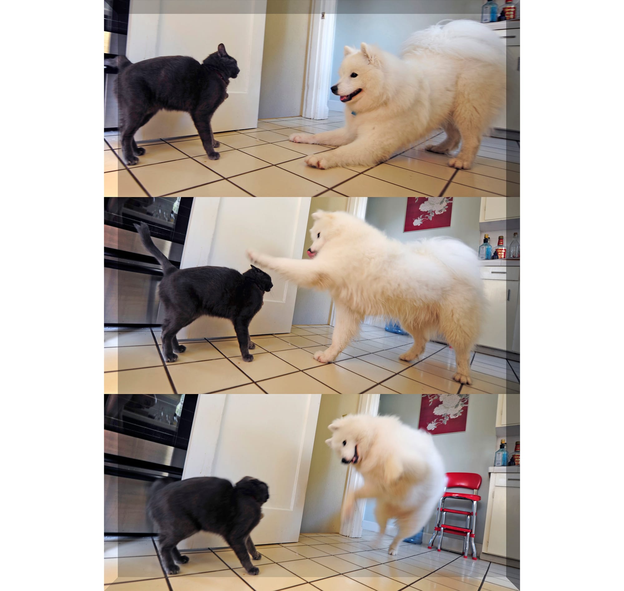 The story of Jamie Samoyed's pack began when Jamie moved from his birthplace in Langley, British Columbia to join our pack in Seattle in January of 2010 at age 8 weeks. At the time, Jamie's packmates were three cats named Fish, Ike, and Murg, and we created a Facebook page to share Jamie's photos.