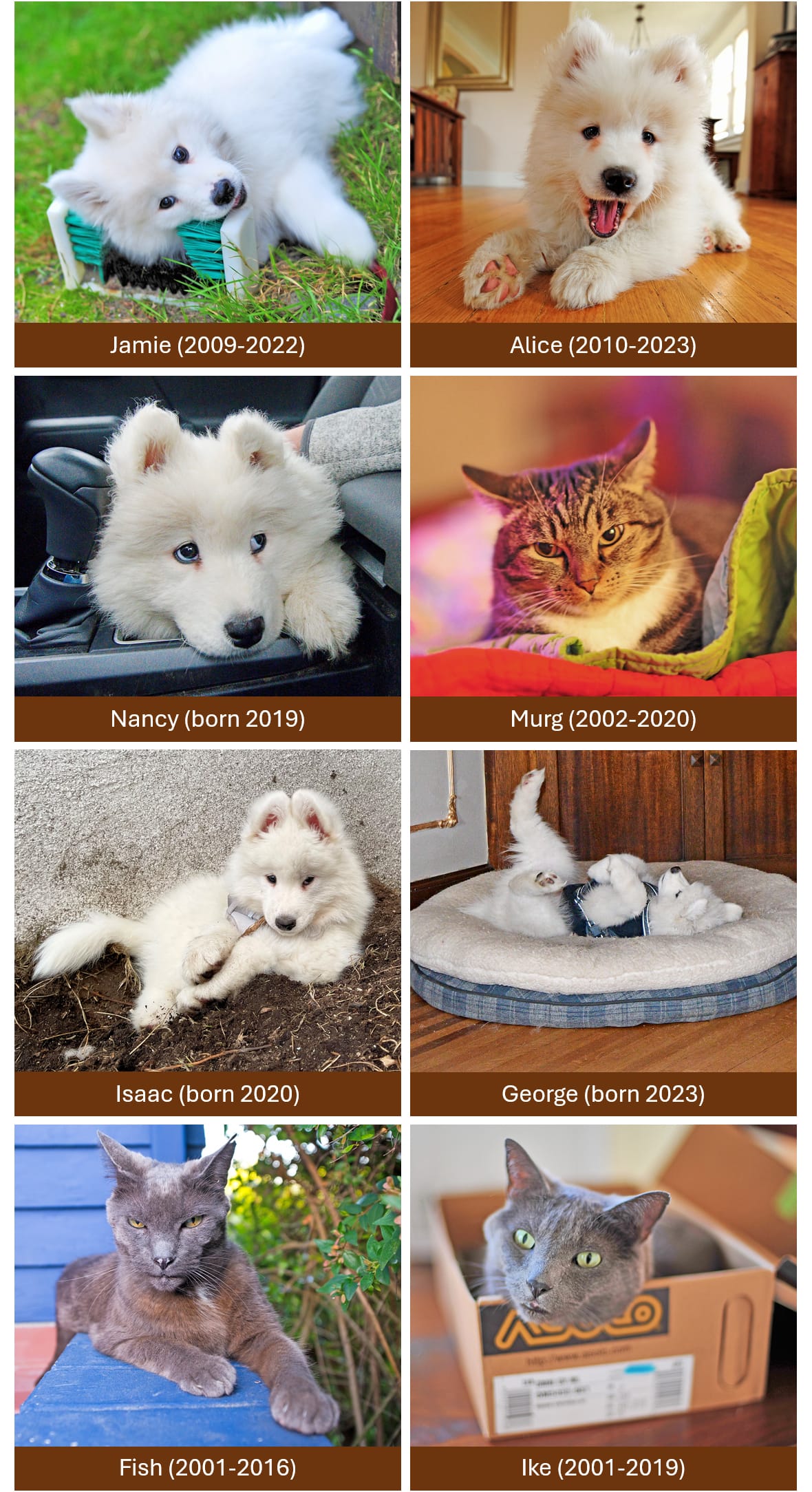 Alice joined the pack in late 2010, and for the next decade Jamie and Alice posted about their adventures almost every day on Facebook. (Well, their staff did.) Then in 2020, Nancy joined the pack and we moved to Montana, and then Isaac joined the pack in 2021, and George in 2024.