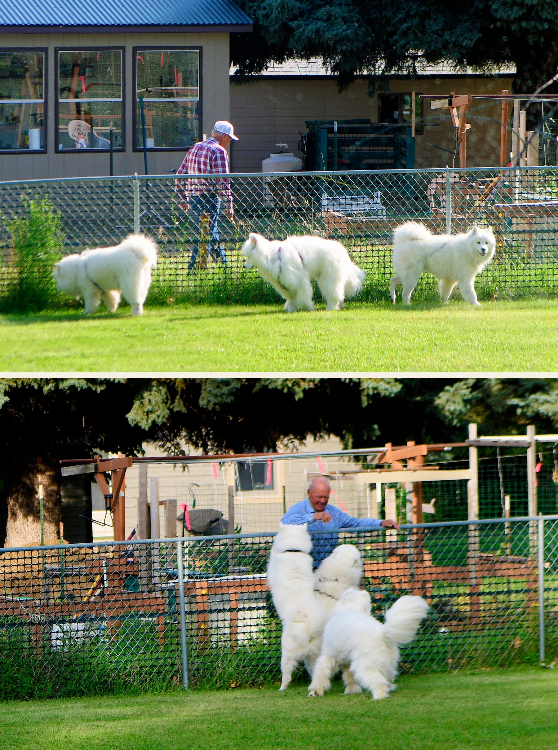 A romp after dinner in the backyard of the AirBnB. The dogs loved this yard. Next time we go to Fort Peck, we may rent the same place if it's available.