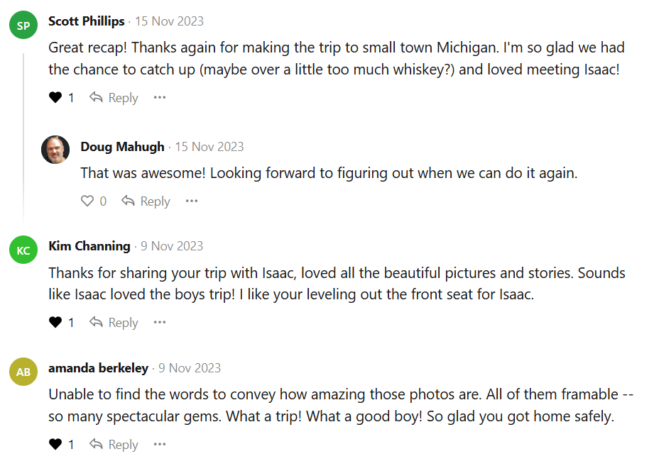 In the fall of 2023, Isaac and I took a road trip from Butte to visit some friends and family and woodworking shops in the Midwest. Isaac had previously traveled to a few Western states – Washington, Idaho, Montana, Wyoming, Utah, Nevada, and California – but this was his first experience of North Dakota, South Dakota, Minnesota, Wisconsin, Iowa, Illinois, Nebraska (briefly), Indiana (briefly), and Michigan.
