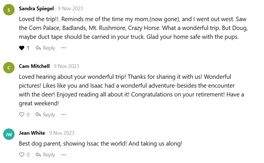 We filled up the gas tank at Wall, and then drove the remaining 45 minutes to the Motel 6 in Rapid City. Isaac was the 5th dog I've stayed at that motel with – Mia, Trouble, Jamie, and Alice have all stayed there.