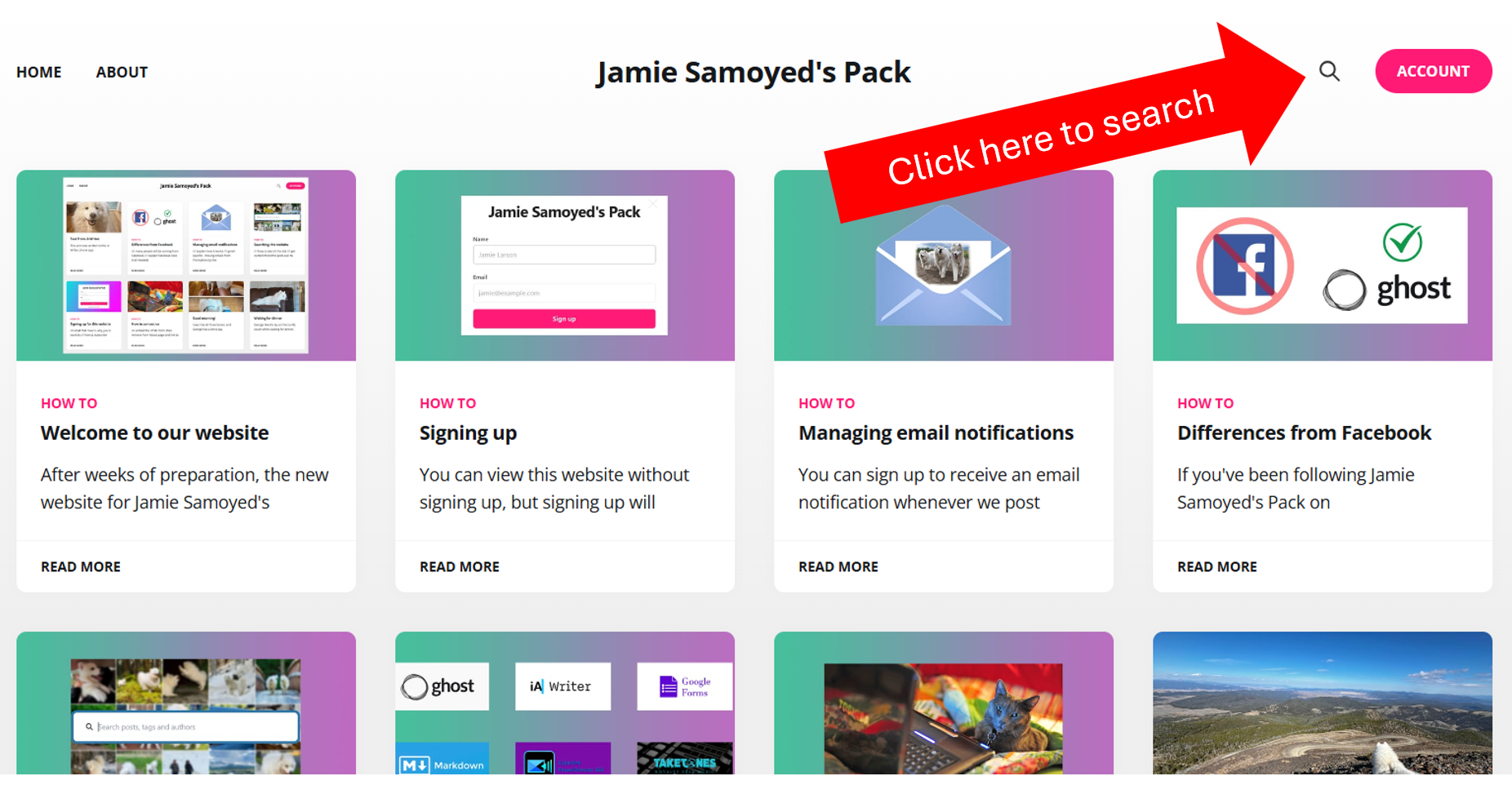 /// some folks may want to search for a specific post they remember (use an example from Jamie Samoyed and Jamie Samoyed's Pack?)